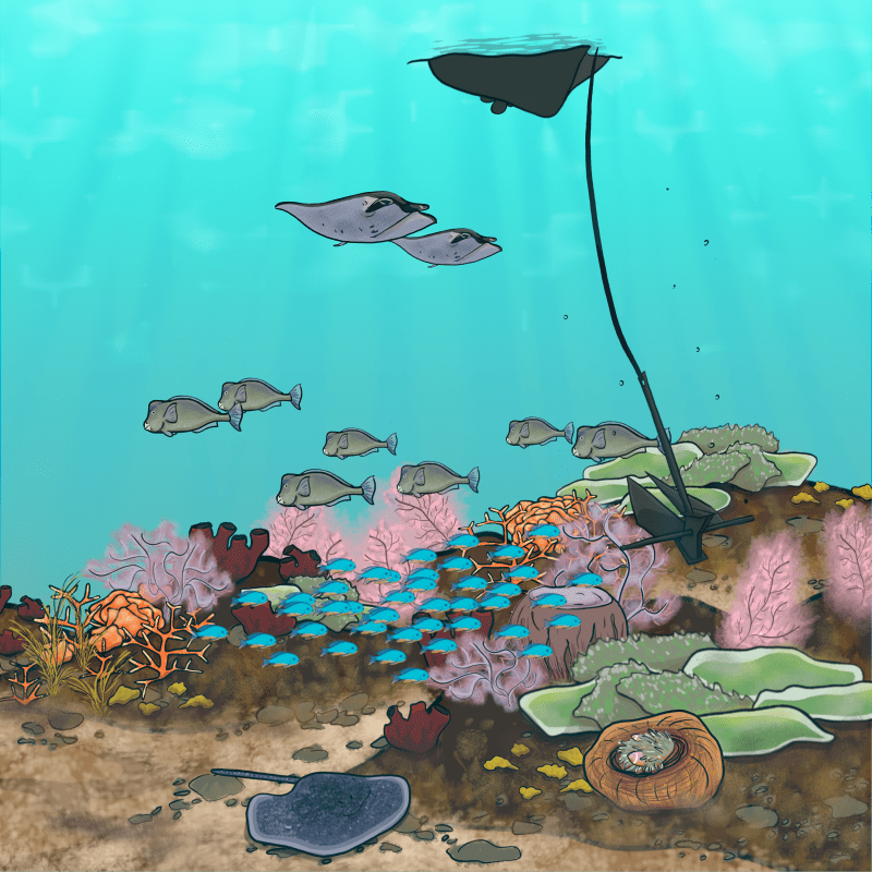 Anchors and boat moorings also impact eelgrass beds, a sensitive habitat that provides a home for young salmon and other small fish. Check out the animations I did for Friends of the San Juans, showing the impact these common boating actions can have on the ecosystem and the fish-friendly solution to them.